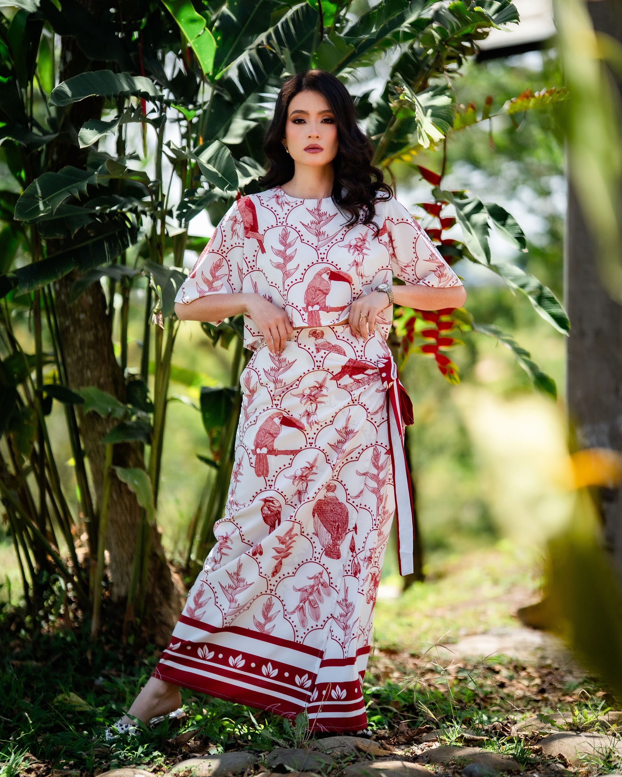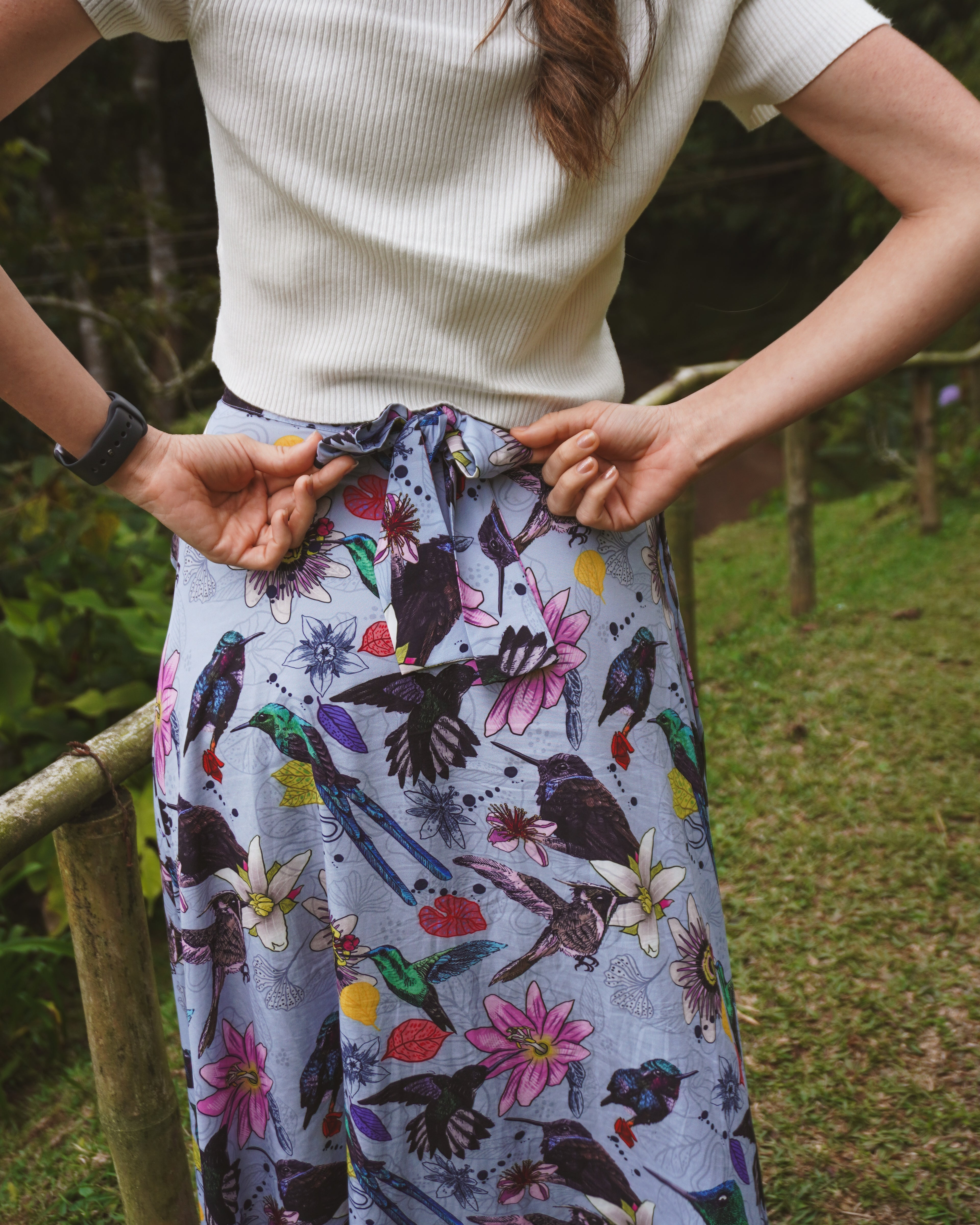 BLUSA AVES, blusa manga corta holgada con botón atrás.